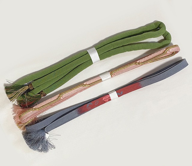 【商品の特徴】 張りのある手触りで確りと打ち込まれた黒の博多織りの地織りに、グレーやくすんだラベンダー色、くすんだ水色などの縞に織り分け、唐花文様や七宝繋ぎなどの柄を白で重ね織りした、全通柄の品。 松葉仕立て。証紙が付いています。 ※小紋や紬などに合わせます。 すっきりとしたシックな雰囲気の良品です。 【寸法】 長さ…3.67M 幅…31㎝ 【状態】 ランク…A 証紙付き