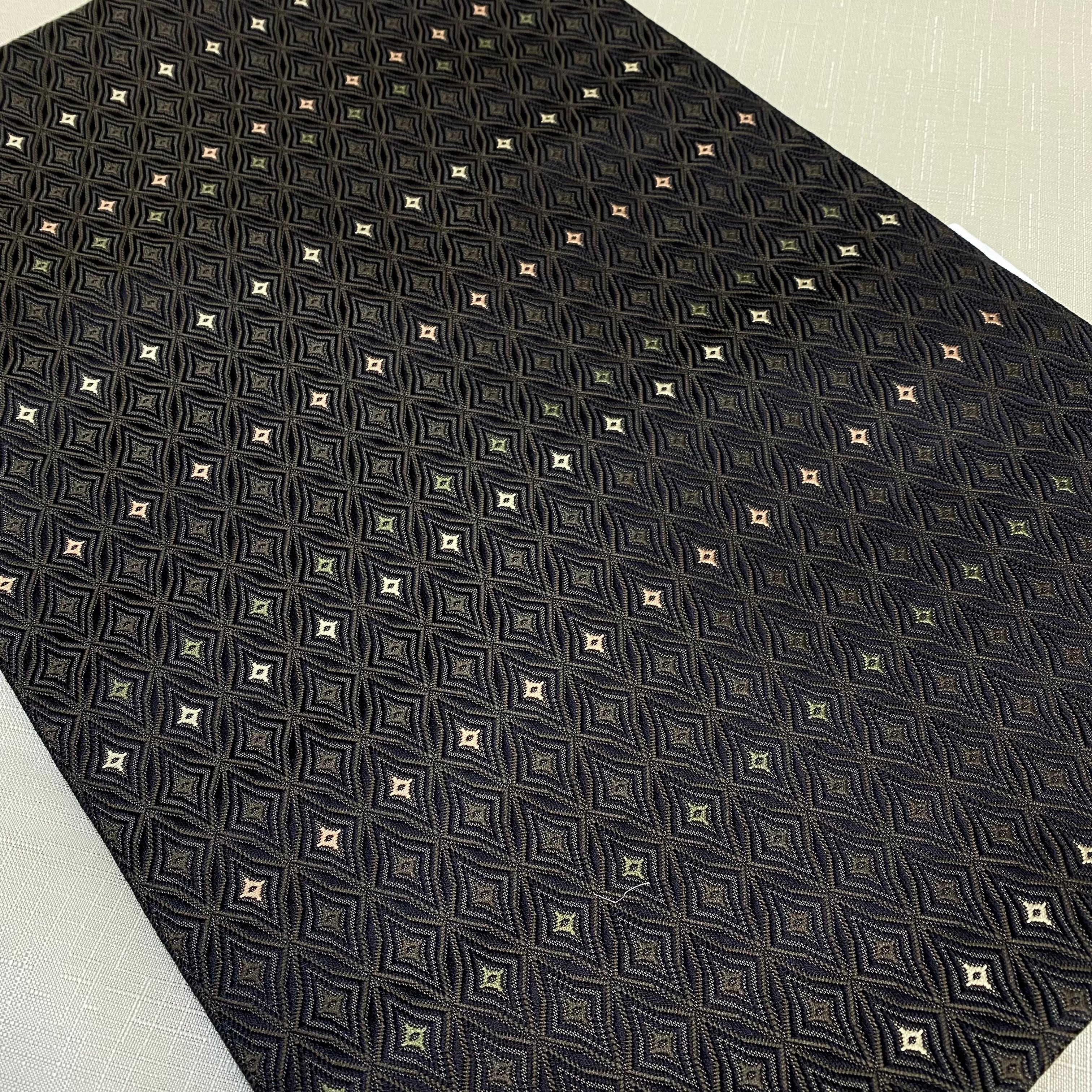 やや立体的に織り込まれた地紋は、まるで江戸切子のようなキリッとした美しさがあり、深みのある色が渋めコーデの楽しみを広げてくれます。