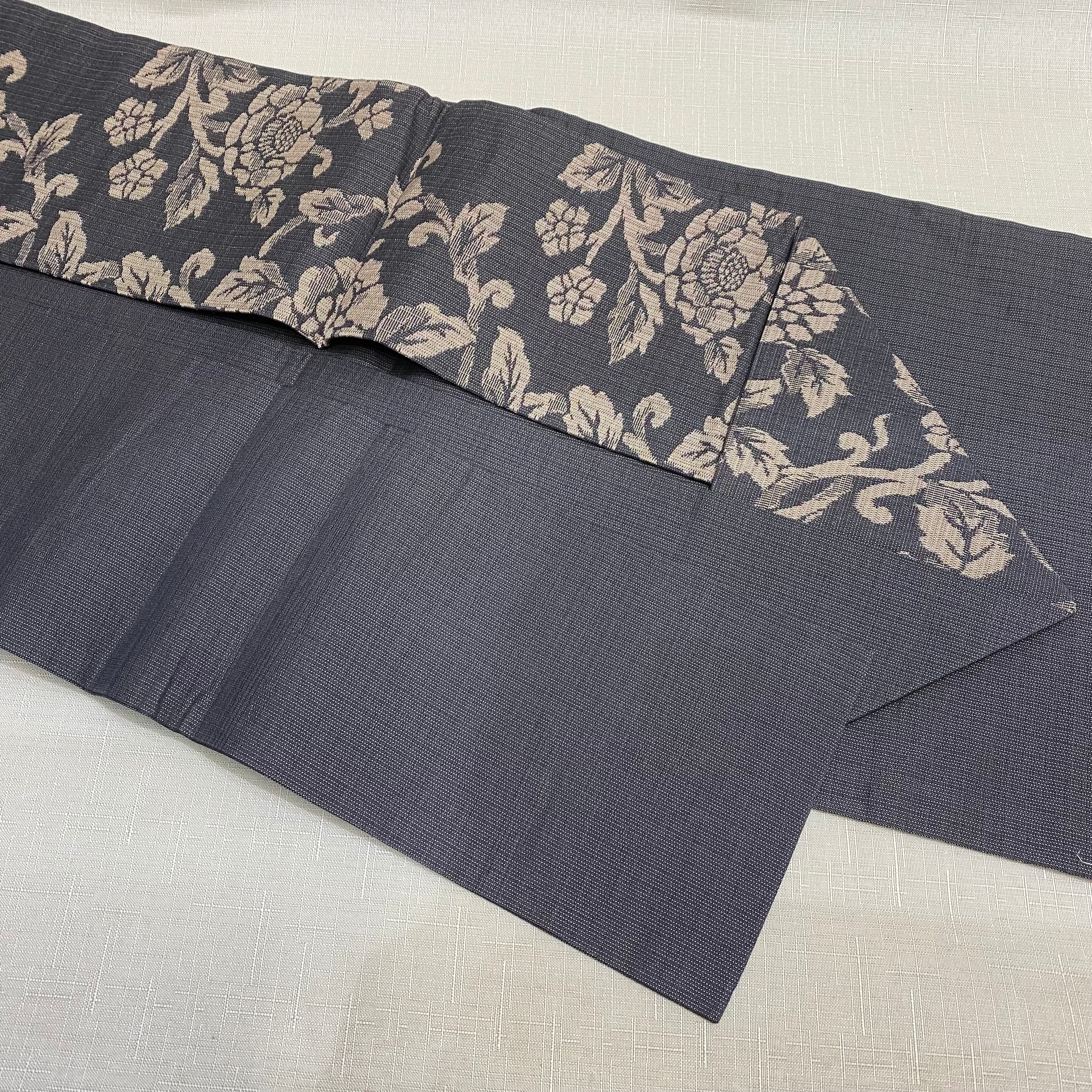 【紬風錦】チャコールグレー蔓華紋名古屋帯