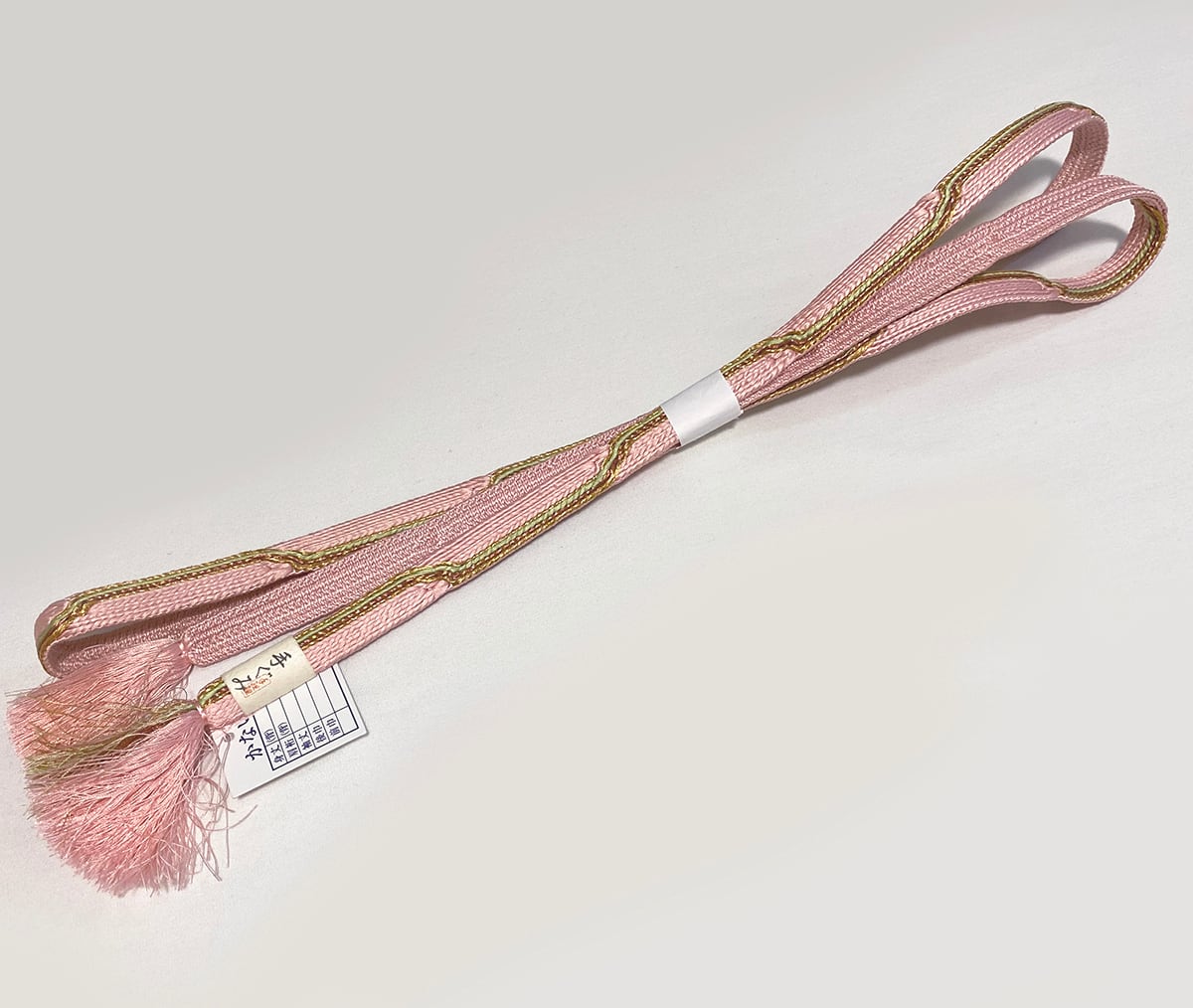 (1)薄ピンク色で黄緑色や金糸などの平組み。