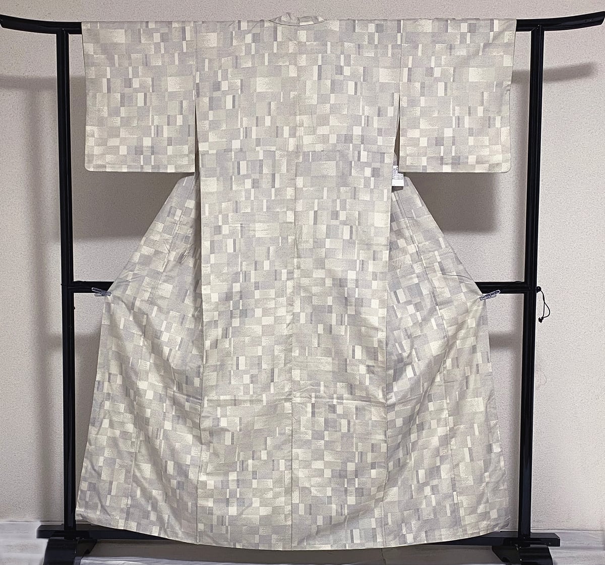 八掛けは正絹鶸(ひわ)色暈しで胴裏は正絹が付いた手縫い仕立て。