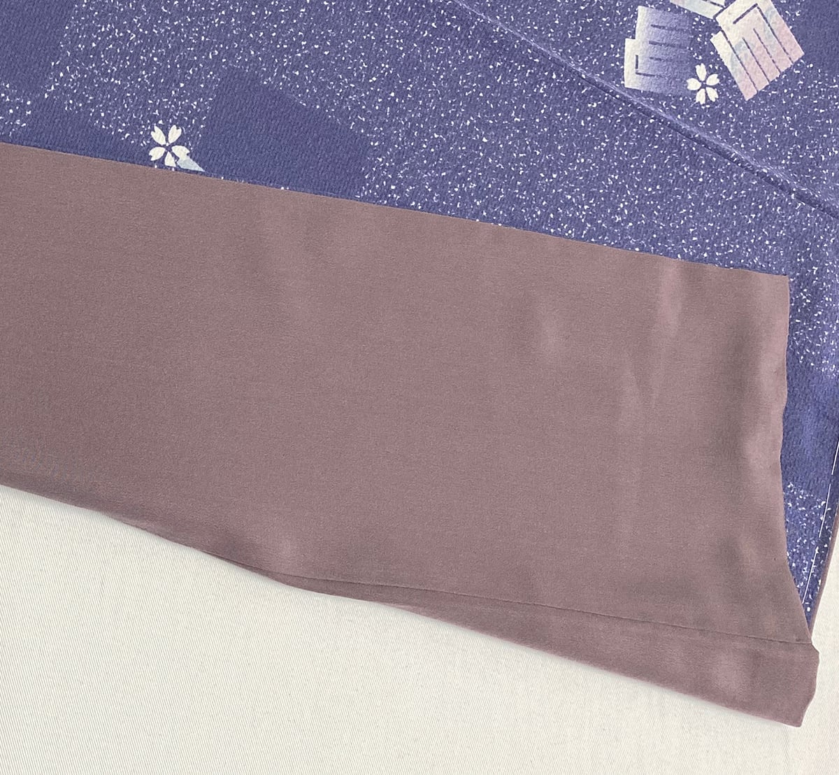 八掛けは正絹ココアブラウン色無地で胴裏は正絹が付いた手縫い仕立て。